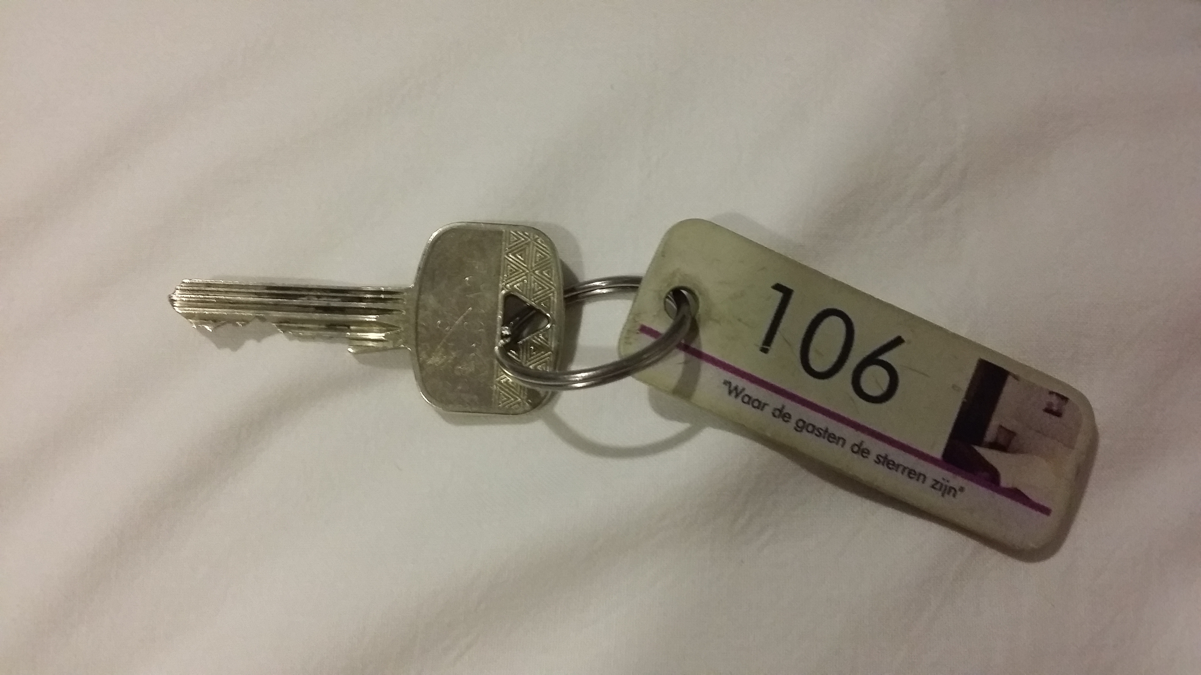Toen we eenmaal tot de conclusie kwamen dat dit toch echt de enige deur was en dat de receptie daar toch ergens moest zijn in de meute, besloten we naar binnen te gaan. Een typische, fijne en vrolijke Brabander verplaatste zich van de tap naar een klein tafeltje met ‘receptie’ erop toen aankwamen. We moeten ook hebben gekeken als een stel konijntjes in de koplampen, want we hadden zo’n drukke kroeg echt niet verwacht bij een hotel. Als dat maar goed gaat…