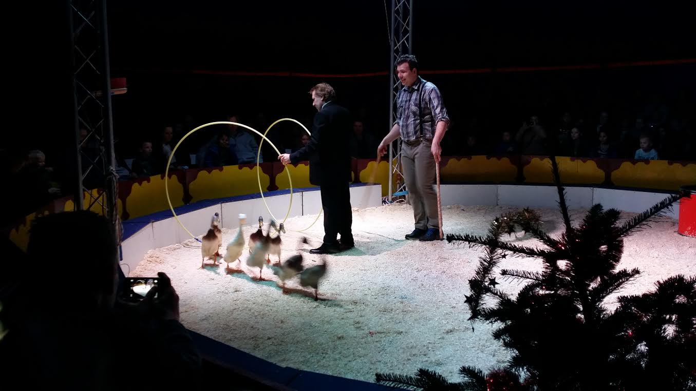 Verder vond ik het circus fascinerend, het was enorm kleinschalig en dat had iets aandoenlijks, helemaal omdat er toch wel wat dingetjes fout gingen. Wat het allermeeste indruk maakte, was de vrouw op de trapeze, die op haar hoofd ging staan zonder benen en armen te gebruiken. Erg leuk dat de mensen zo werden vermaakt door jonge mensen die waarschijnlijk meer willen doen in de circuswereld, maar nogmaals; die eenden mogen er van mij uit, evenals het varken/zwijn. Houd het lekker bij honden, die houden ervan om voor mensen te werken. Deze wel in ieder geval.
