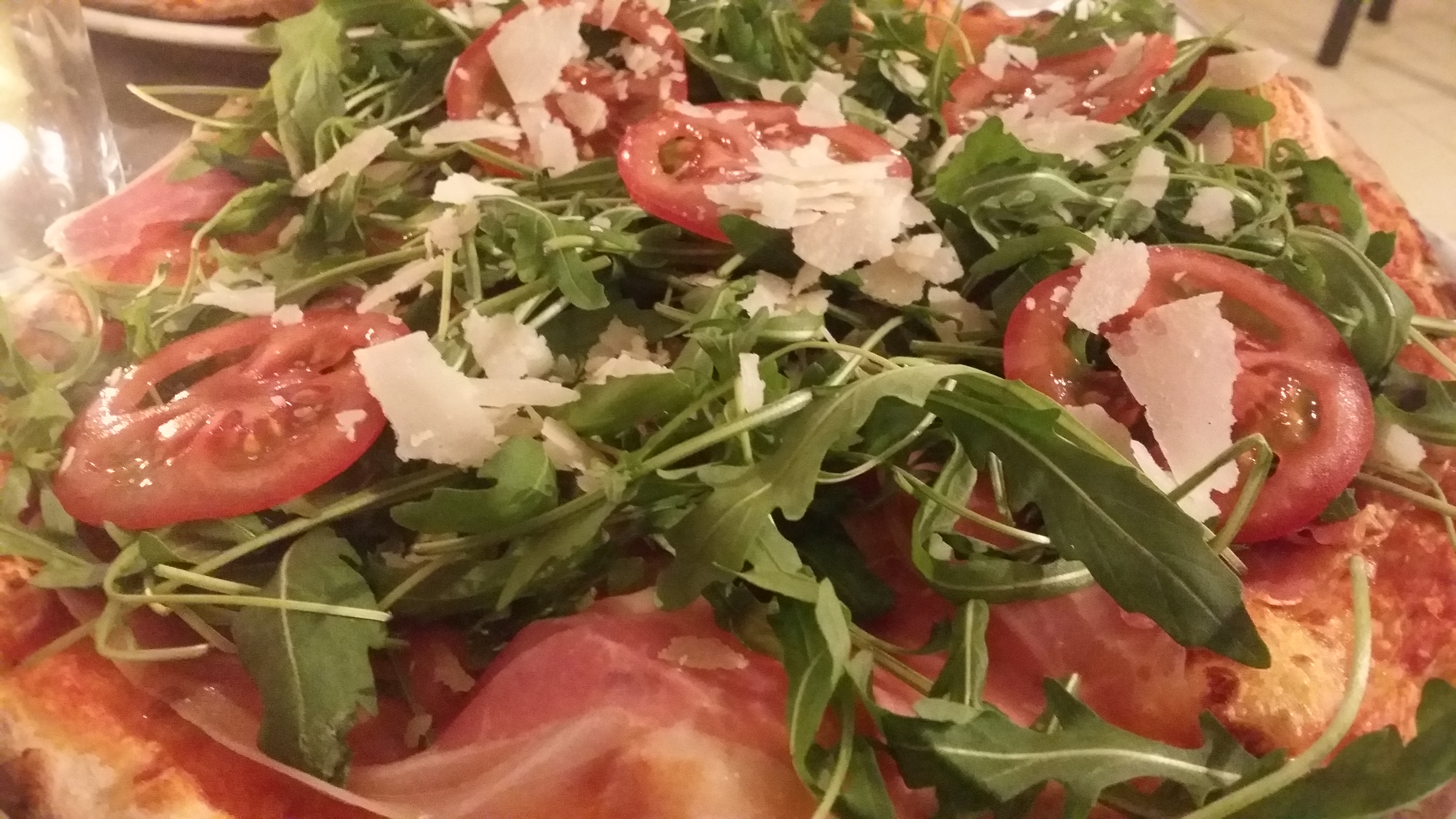 Ik ben geen voedselfotograaf en ik waardeer dinerfoto’s meestal niet op Facebook, maar waarschijnlijk zegt een foto meer dan woorden. En zelfs met mijn telefoon ziet de pizza er yummy uit, toch?