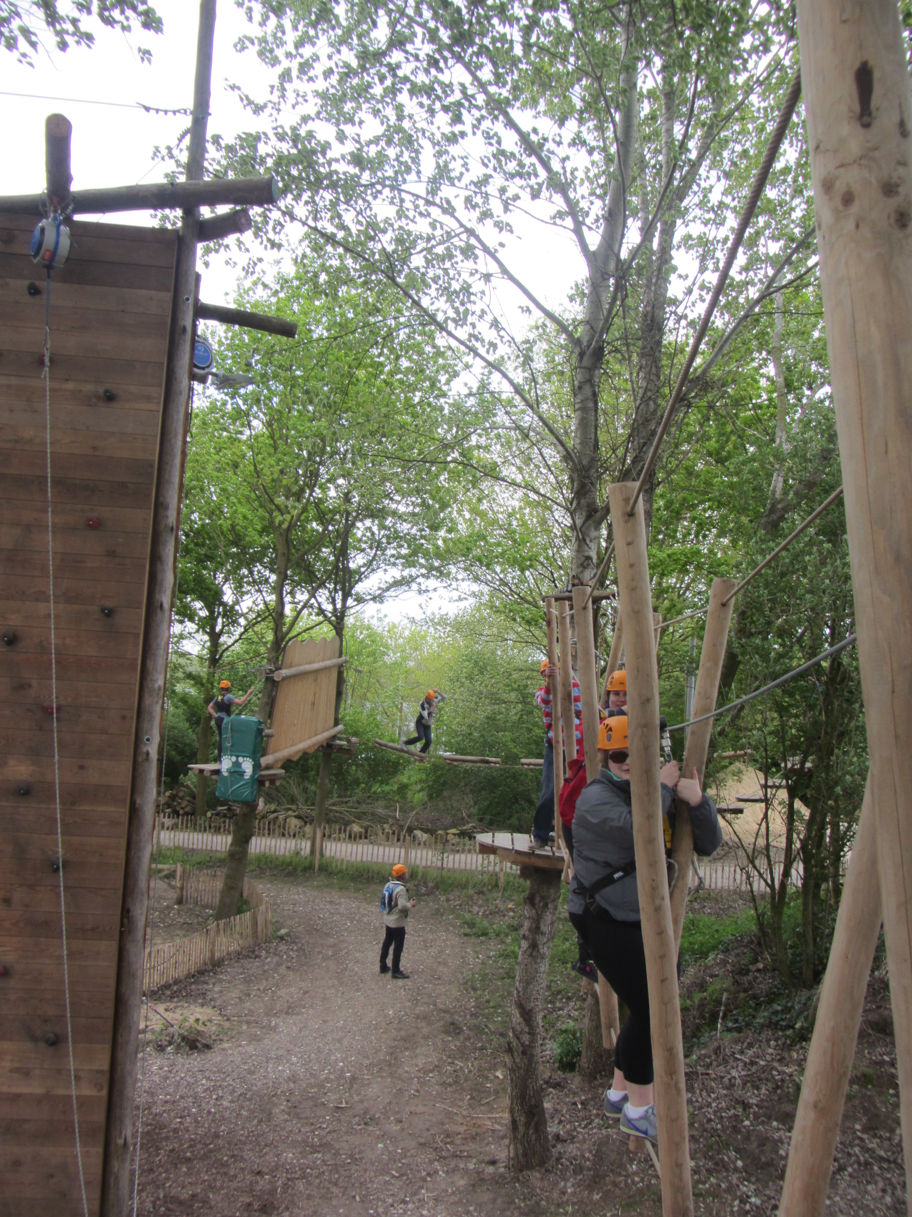 Toen we aankwamen was het erg druk, want er startten meerdere groepen tegelijk om 12 uur. De kluisjes waren allemaal vol, waardoor een van ons 10 minuten terug moest lopen naar het parkeerterrein om de spullen neer te leggen. Gelukkig bleek het wel de moeite waard. We kregen netjes uitleg over de veiligheidshelm, de klimgordel enzovoorts, plus wat veiligheidsregels. Eenmaal op het parcours legde een begeleider uit hoe het systeem werkte en daarna liet hij ons gewoon gaan. Je zette jezelf met pak en al aan een soort klimtouw met rail-geul (de Safety Hook) op de rails die boven het hele parcours hing, en je kon daar niet vanaf raken tot het einde. (of het begin, als je bang terugkeert, maar dat is uiteraard niet aan te raden).