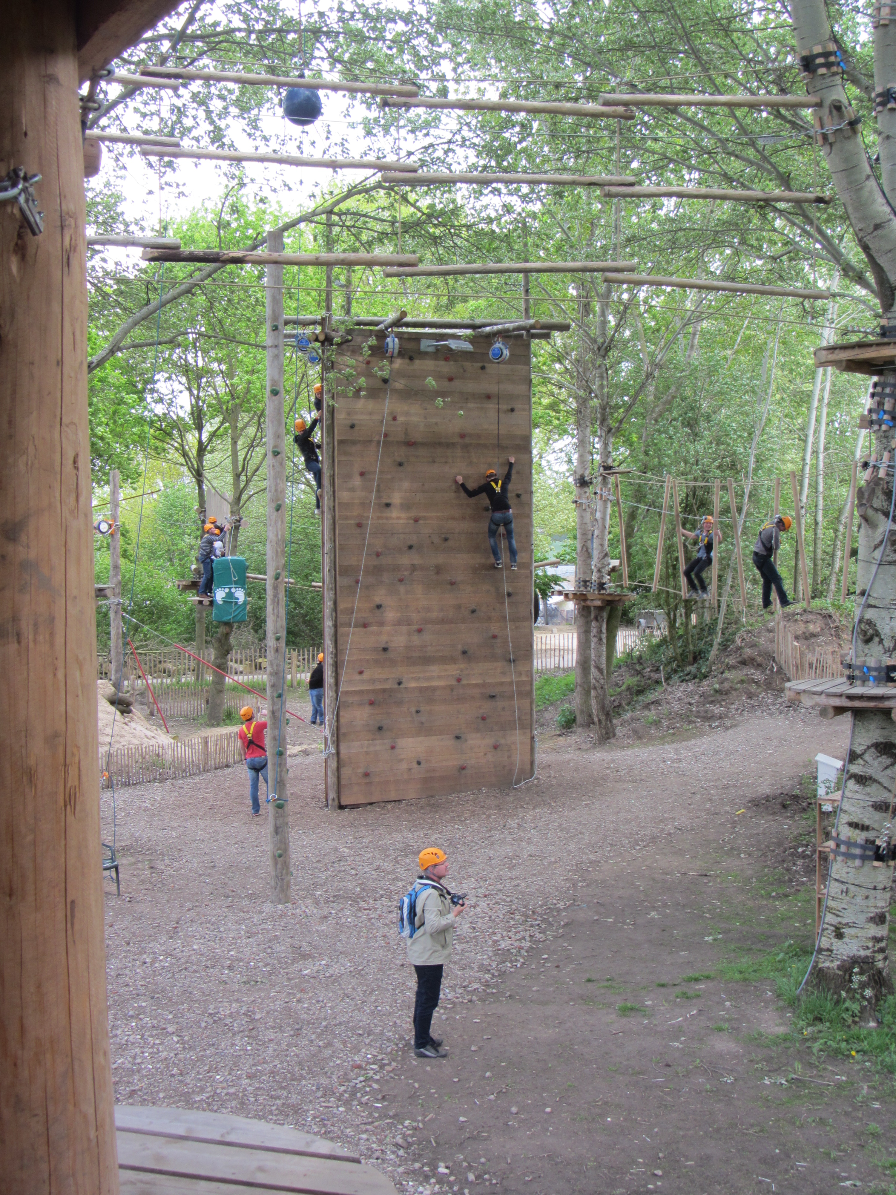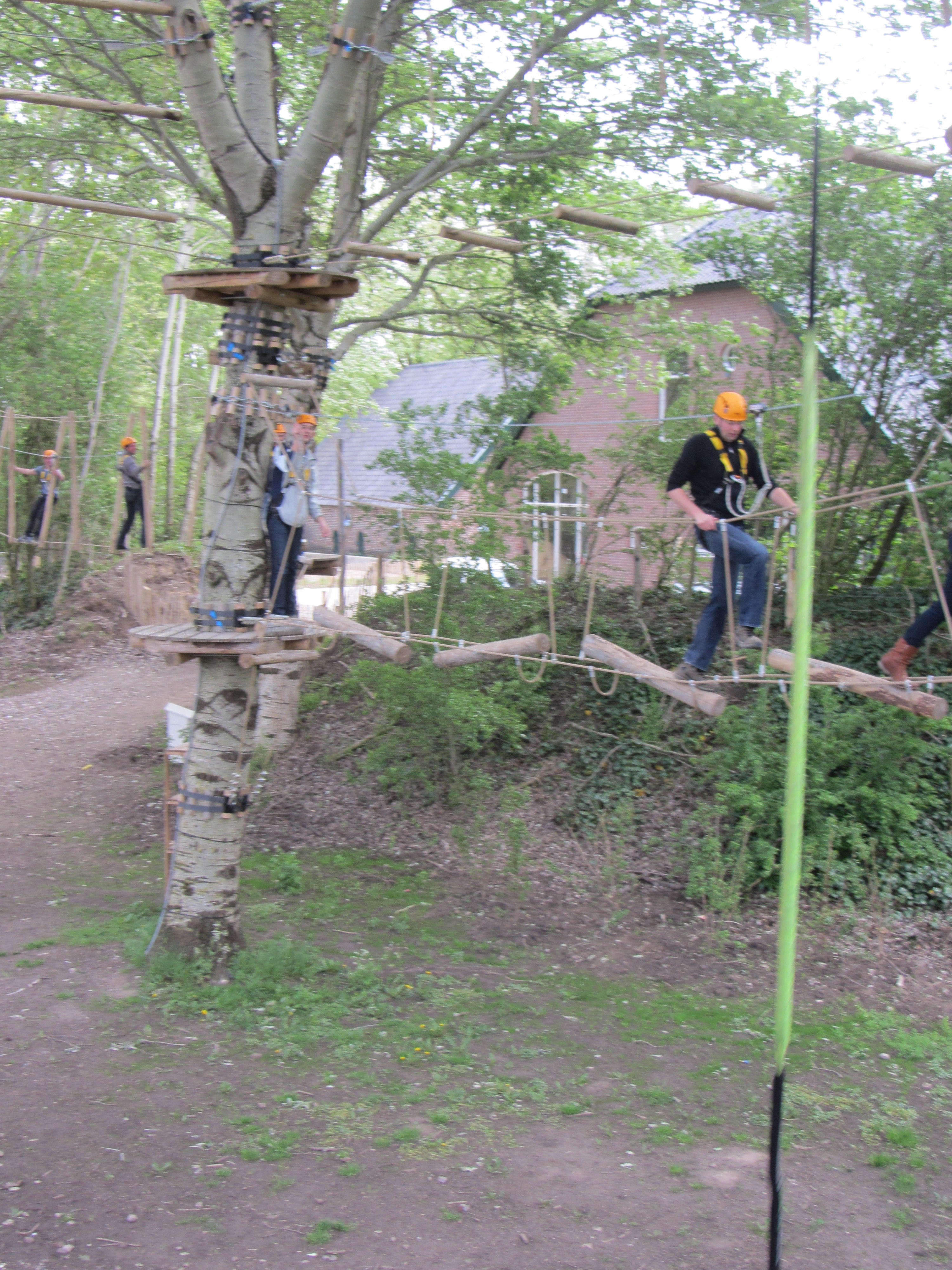 Het zag er allemaal tip top in orde uit en mijn familieleden hadden geen probleem hun leven in de handen te leggen van dit railssysteem. Al gauw klauterden we met zijn zessen achter elkaar van de ene op de andere situatie, verschillend van een korte tokkelbaan tot over een gaf springen en touwbrug-achtige constructies. Uiteindelijk hebben we ontzettend veel lol gehad met de originele hindernissen, grappige foto’s gemaakt en was het hier en daar nog een spannend parcoursje. Ik had verwacht dat mijn ouders, die een groot gedeelte van hun leven bergen beklommen in de zomervakantie, niet erg onder de indruk zouden zijn, maar ook mijn moeder (aka De Berggeit) ging met veel plezier van het ene touw naar de volgende blauwe boei.