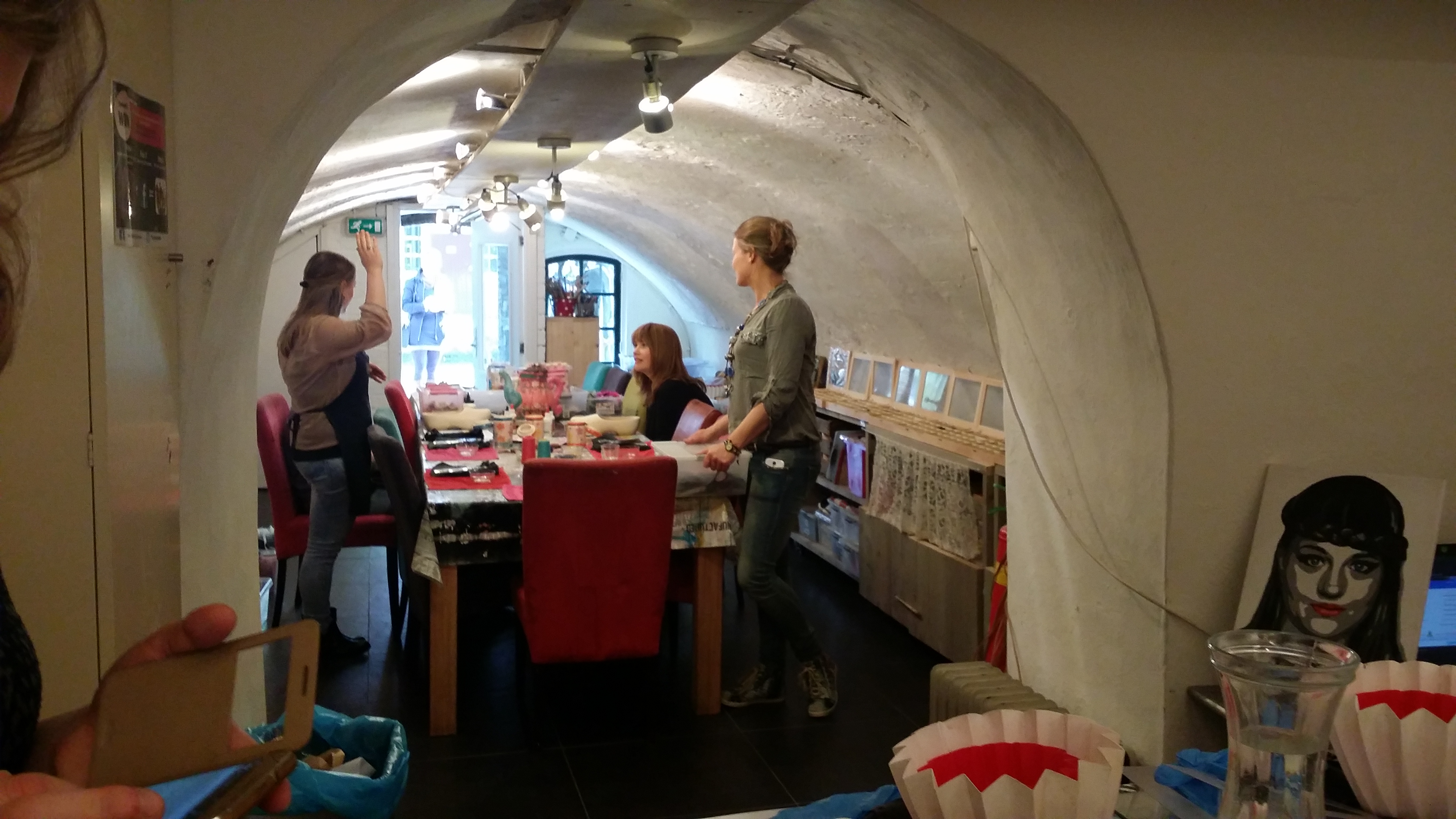 Vandaar dat ik lekker met een vriendin ging beton gieten. Het was in eerste instantie even zoeken waar we moesten zijn, want je hebt in Utrecht nogal veel grachten en daar zitten dan ook weer dingen onder; het kan nogal een wirwar zijn. Toen we het eenmaal hadden gevonden, bleek al gauw dat er die ochtend op hetzelfde moment diverse workshops startten; er waren mensen slippers aan het decoreren, graffiti aan het schilderen en wij gingen dus beton gieten. Daarna zou er nog een groep komen om te naaktmodel schilderen, maar toen waren we al weg (helaas!).