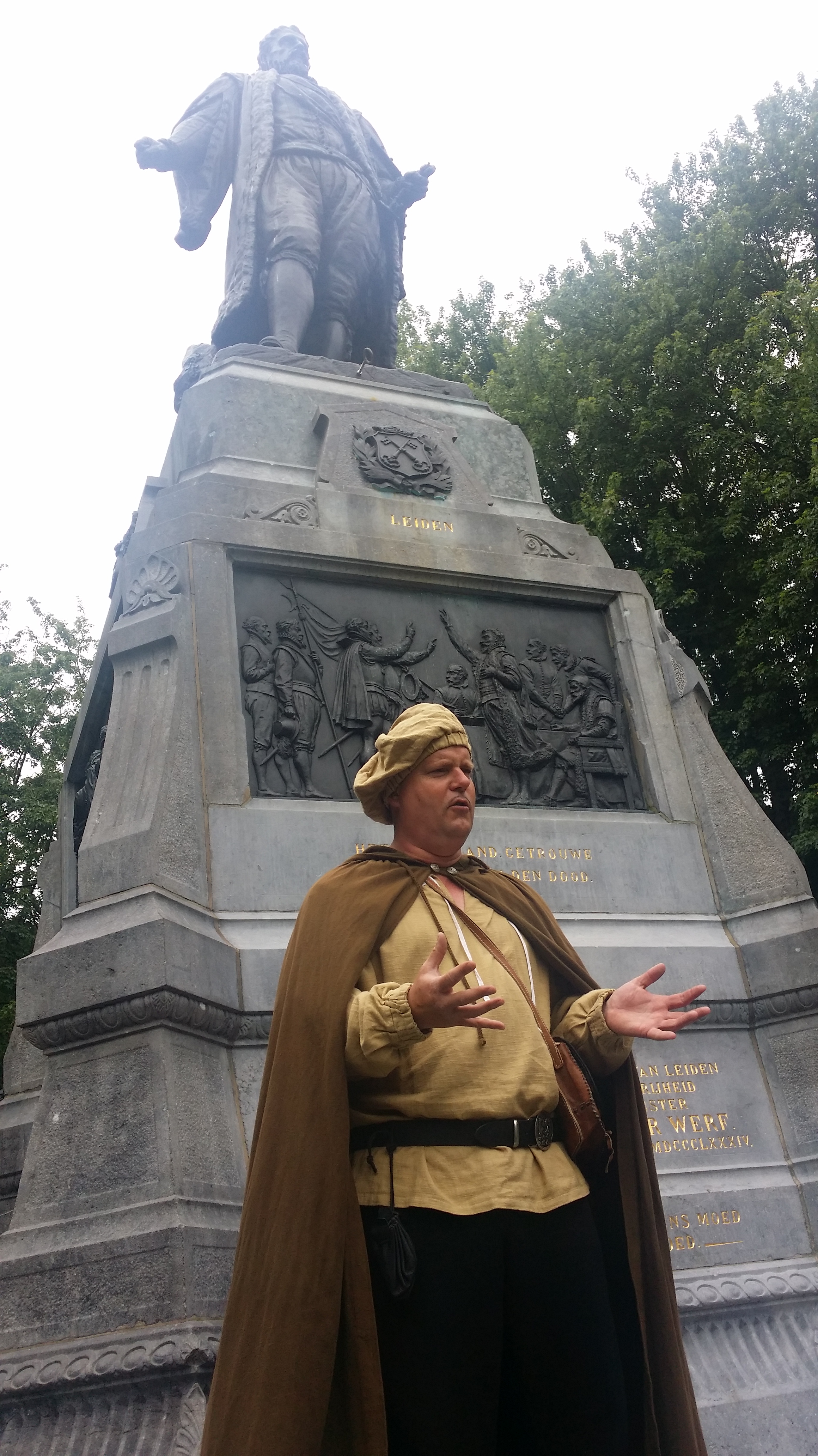 Ditmaal heb ik een heel ander soort toerist gespeeld, namelijk een wat volwassener persoon dat meer te weten wil komen over de stad Leiden. Op SocialDeal stond voor 7,50 euro per persoon (in plaats van 15 euro) een ‘unieke ontdekkingstocht door Leiden met een stadswandeling onder leiding van verhalenverteller Rembrandt’. Kortom, iemand die uitgedost als de schildermeester rondloopt en je allerlei plekjes in Leiden laat zien.