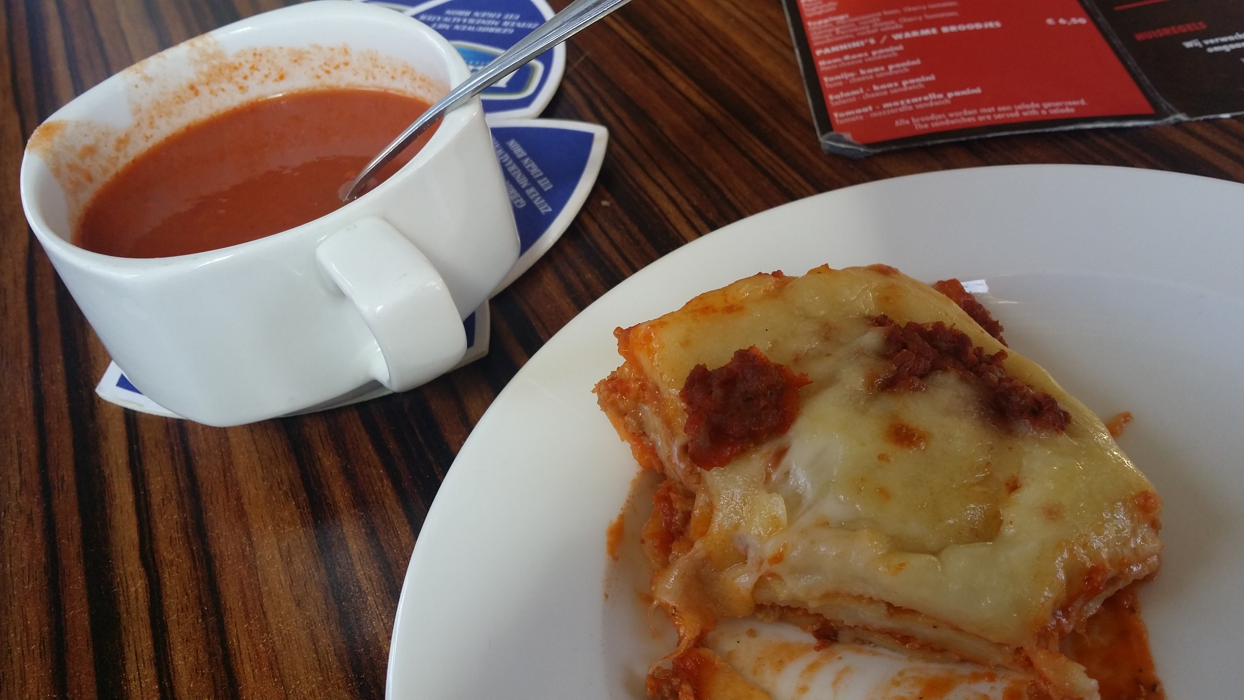 Helaas was het eten zelf niet zo lekker en smaakte het helemaal niet vers of bijzonder. Flauw en mat zelfs. De lasagna die ik van het lopende buffet had opgeschept was op sommige plekken wat koud en de soep die ik had gekozen smaakte niet naar tomaat maar meer naar metaal. Hoewel ik veel zin had in soep, heb ik dit moeten laten staan omdat ik het simpelweg echt niet wegkreeg. Erg jammer. Pizza en overige pasta is alleen te bestellen vanaf het menu, dus mijn gezelschap bestelde een pizza en ik ging voor pasta. Het was allebei wel oke, maar veel te veel van hetzelfde. Vooral het bord pasta was zo enorm vol dat ik letterlijk slechts eenvijfde heb gegeten en toch tjokvol zat. De porties mogen echt wel wat kleiner, zeker omdat het een all-you-can-eat-concept is waarbij mensen graag meerdere kleine gerechten proberen in plaats van megagrote borden vol.