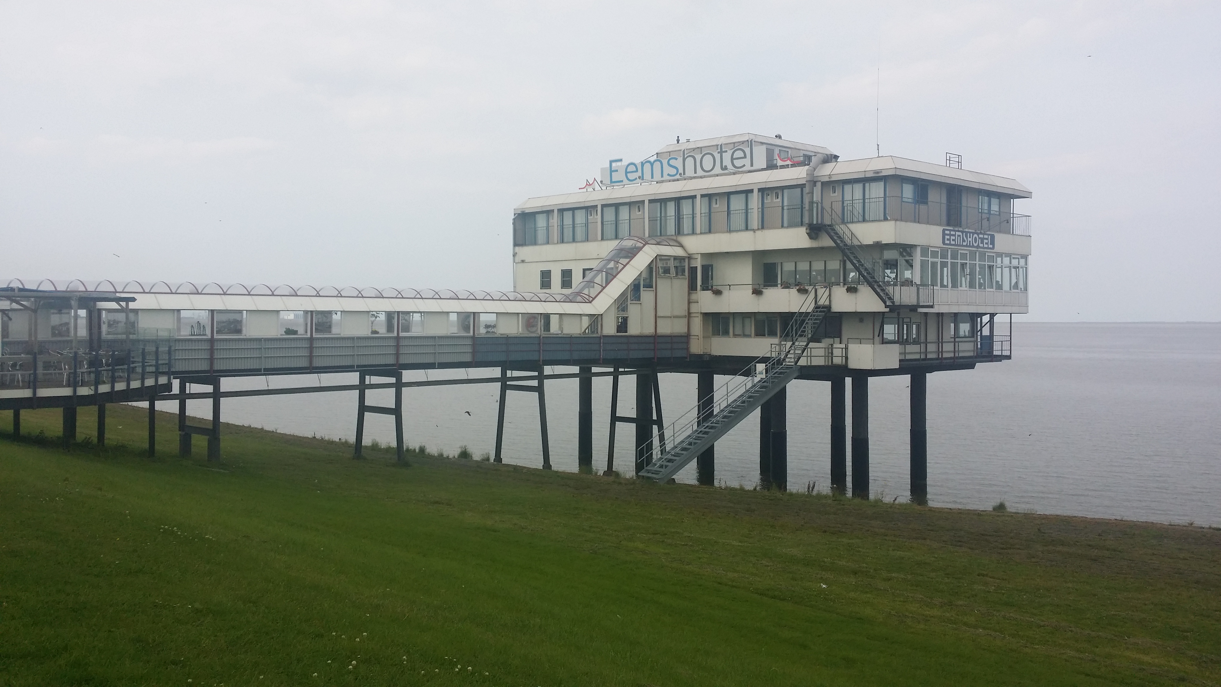 Het Eemshotel is een uniek hotel, want het staat op enorme houten palen pal boven de zee in Delfzijl. Op VakantieVeilingen kun je 2 overnachtingen boven het water winnen, wat mij is gelukt voor 30 euro. Dit hotel staat er al erg lang; vergane glorie of de moeite waard?