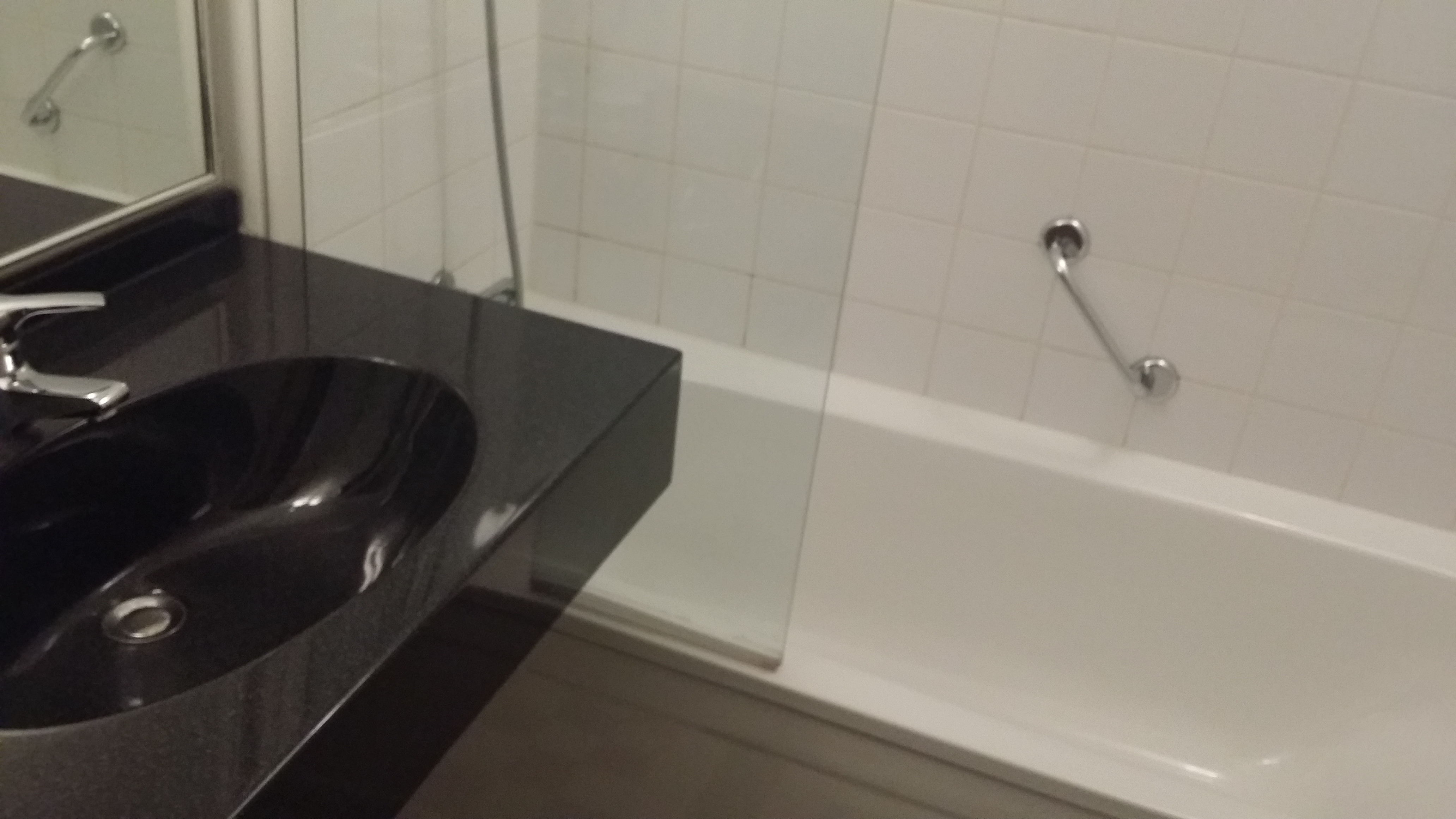 Tot mijn grote spijt moet ik onthullen dat we het zwembad nooit hebben gehaald. Dat klinkt heel romantisch, maar dat is het niet. Partnerlief had een te grote zwembroek mee, waarmee hij echt onmogelijk kon gaan zwemmen. We hebben nog een half uur gehannest met vetertjes en andere manieren om die band op zijn heupen te laten zitten, maar helaas; deze zwembroek was echt veel te los om uberhaupt maar in rond te lopen, laat staan om nat en zwaar te laten worden.. Ik vond het een beetje sneu om hem achter te laten, dus ben ik ook maar lekker op de hotelkamer blijven hangen. Dan maar in bad!