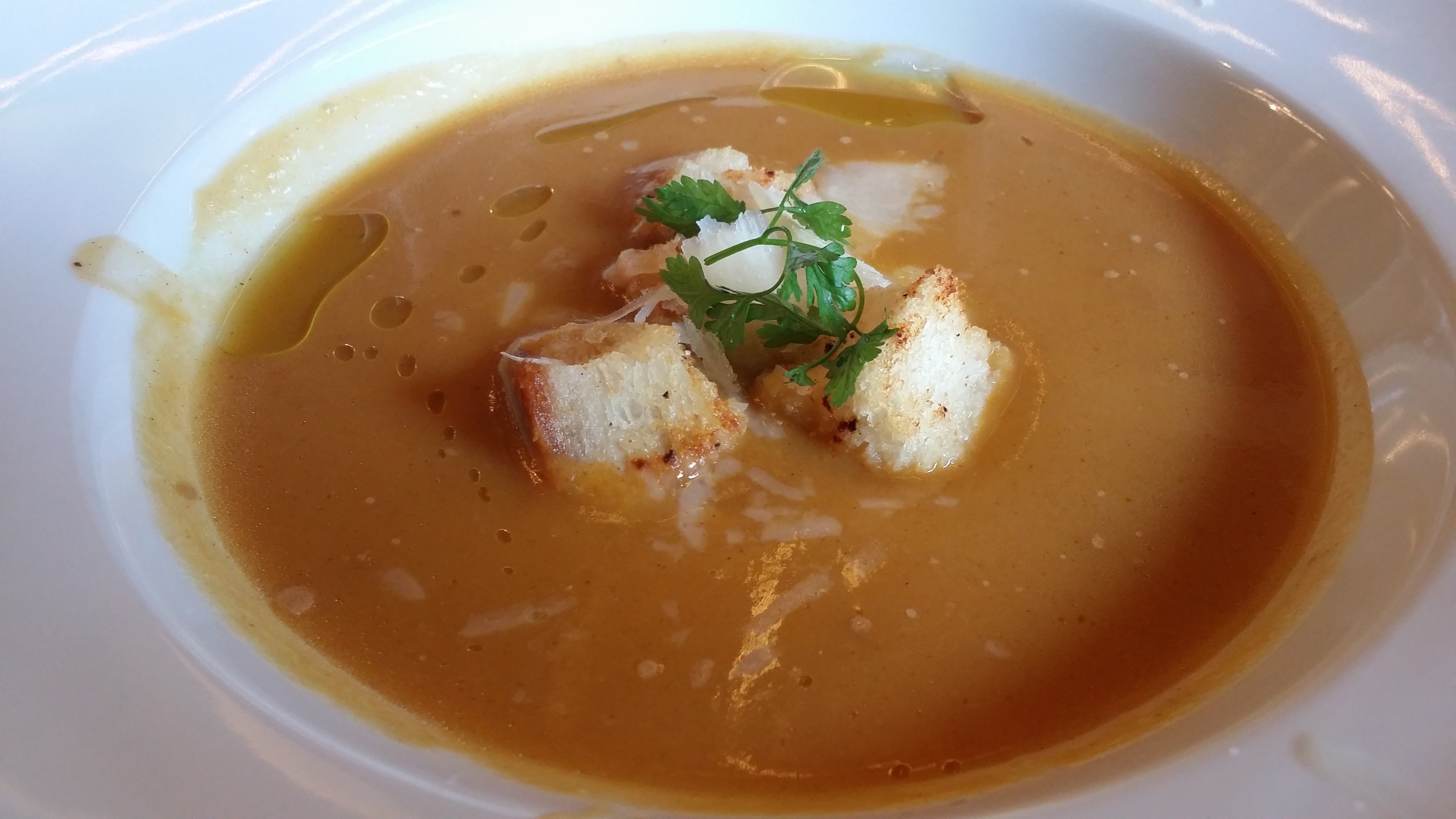 Het duurde al met al extreem lang. Helemaal als je lekker naar Artis wil, dan heb je geen zin om een anderhalf uur te doen over een lunch. Misschien ben ik heel ongeduldig, maar ik vind dat je bij een lunch binnen drie kwartier wel ongeveer klaar moet zijn, met eventueel uitloop naar een uurtje. Bij Plancius namen ze overal erg lang de tijd voor, terwijl onze bestellingen niet zo heel compliceerd waren. We konden kiezen uit tomatensoep en pompoensoep vooraf, dus we kozen voor pompoensoep. Deze was niet zo heel lekker, omdat het meer een soort kaneelsoep was. Mijn vriend refereerde ernaar als pepernotensoep. Ik waardeer dat ze een herfstthema kiezen en kaneel met pompoen mixen, maar misschien iets minder kaneel en iets meer pompoen volgende keer. De soep was zo te heftig.