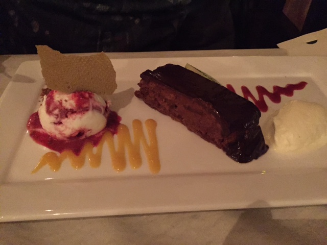 Zo ver is het echter nog niet, want de AH Restaurantactie bestaat uit een drie-gangenmenu en ChiepMiep gaat niet uit eten zonder een toetje te nemen, de perfecte afsluiter. Dat was het ook in dit geval, want ik kreeg een enorm heftig chocoladetaartje, dat ik uiteindelijk niet eens heb opgekund. Heerlijk was het, en wederom prachtig opgediend. Alleen moesten we er eigenlijk belachelijk lang op wachten. Inmiddels waren de meeste mensen al naar huis, en zaten wij nog op ons toetje te wachten. Nu kom ik uit een ongeduldige familie, dus daar had het wellicht ook mee te maken, maar het was wel een lange zit bij Aan Tafel. Gelukkig was het een gezellig gezelschap en wist het eten ons zeer positief te verrassen.