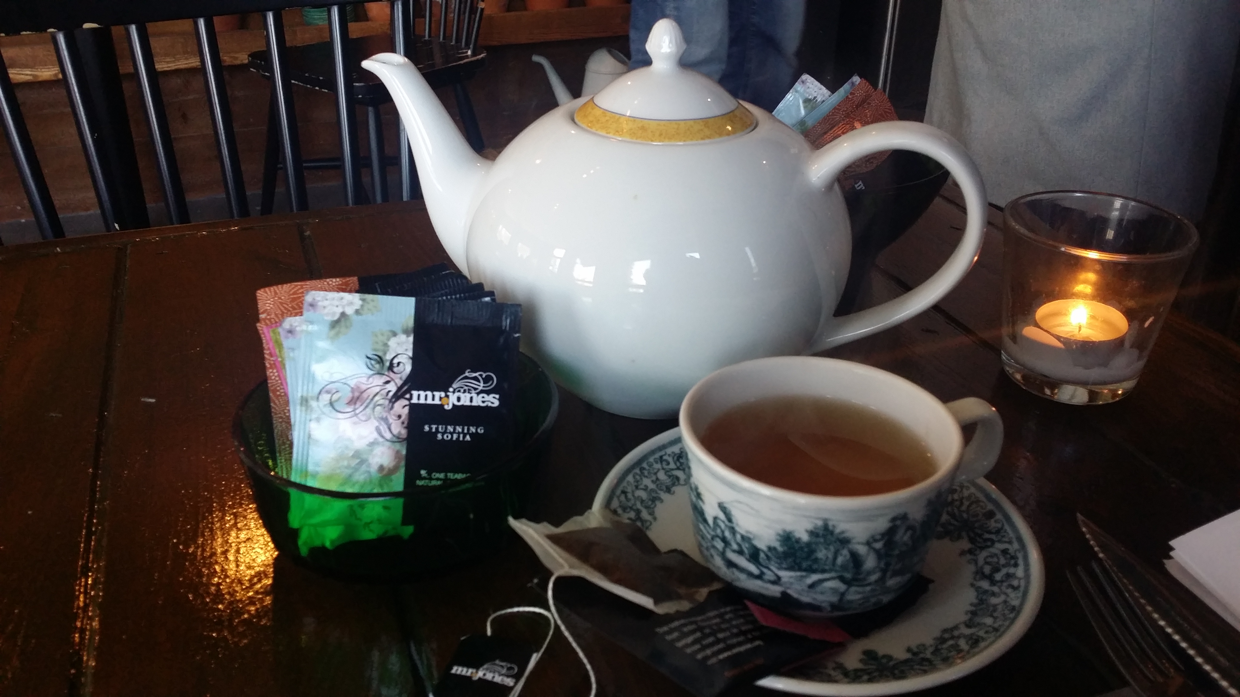 Maar goed, in je eentje is het echt een hele rijke high tea. De scone was heerlijk, maar brokkelde wel wat uit elkaar. Ook miste ik de clotted cream (of slagroom, bij gebrek aan beter), maar de marmelade/jam was er wel heerlijk bij. Eigenlijk was die missende clotted cream het enige dat ik minder vond aan deze high tea. Verder was het echt top. Ik vond het heel prettig dat de bediening zo leuk met elkaar en haar klanten omsprong. Ik voelde me helemaal niet ongemakkelijk dat ik in mijn eentje zat te hightea-en op deze schattige, gezellige locatie. De producten waren vers, lekker zelfgemaakt en je merkte aan alles dat er passie inzat. Om eerlijk te zijn vind ik die prijs van die ‘eerlijke’ high tea helemaal niet eerlijk op Social Deal. Deze high tea zou ook voor een goedkopie-prijs van 12,50 euro online kunnen staan, en dan zouden mensen er alsnog zielsgelukkig en voldaan van thuiskomen.
