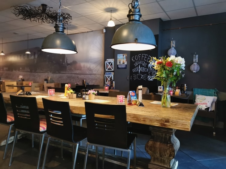 Hoewel ik eigenlijk op het terras wilde gaan zitten, raadde onze serveerster dat af in verband met wespen. Een goed plan, want ik ben niet zo dol op die beesten. Ook is het wel handig voor haar om niet elke keer door een deur te moeten met vanalles en nogwat. Dus we namen lekker binnen plaats, waar een aantal medewerkers achterin het restaurant druk zaten te kwebbelen aan een tafel. Toen die na een tijdje weggingen werd het wat rustiger, want wij waren de enige klanten in het restaurant.
